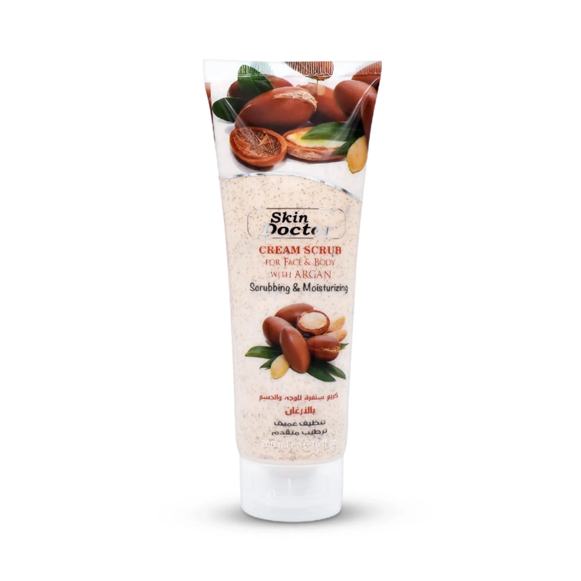 Skin Doctor Face & Body Cream Scrub offers a unique formula that contains natural exfoliating particles and Argan which gently exfoliates the skin without any side effects for radiant glowing skin. The creamy texture of this amazing product allows for deep moisturization of the skin whilst being exfoliated.