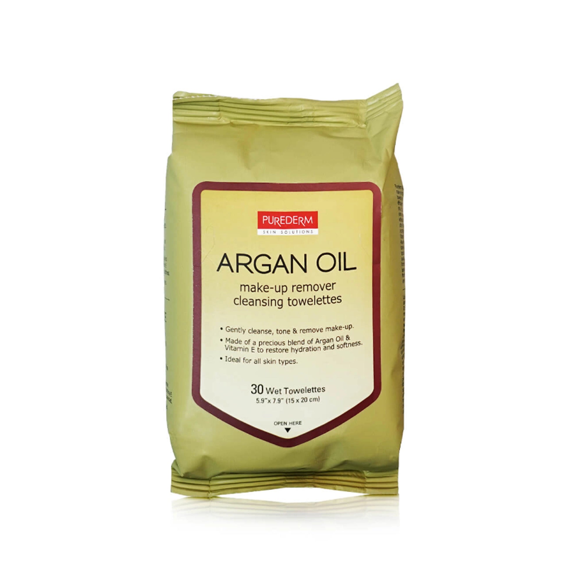 Purederm Argan Oil Make Up Remover Towelettes is gentle and effectively removes eye-liner, eye-shadow, lipstick, blush and even waterproof mascara without skin irritation. These ultra-soft towelettes provide a complex blend of Argan Oil, Vitamin E, Green Tea and Aloe Vera to gently cleanse, tone and resurface skin texture. Use daily, our advanced pre-moistened formula works in seconds to leave you feeling smooth, fresh and moisturized anytime, anywhere!