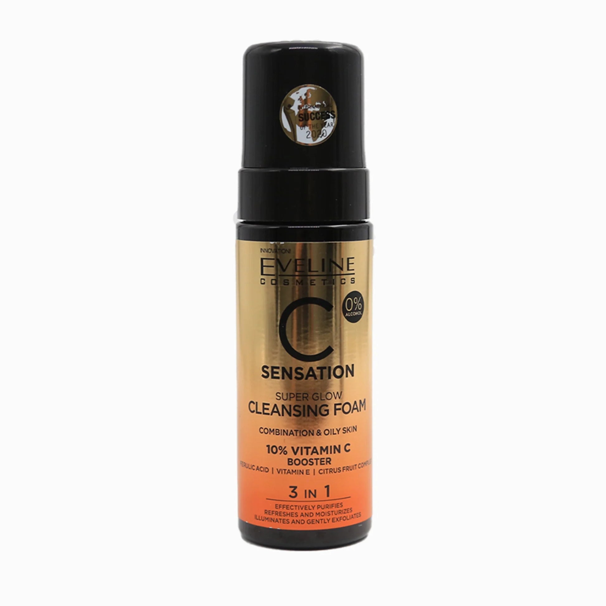 Eveline Cosmetics C Sensation is a revolutionary line of cosmetics based on high concentration of bioactive vitamin C that, combined with vitamin E and ferulic acid, provides triple protection against harmful effects of free radicals. Visibly enhances skin look and delays aging process. 3-Step Stability advanced technology activates the mechanism of anti oxidant auto-regeneration and vitamin stabilization, significantly increasing the rejuvenating power of the formula. Super Glow Cleansing Foam thoroughly removes impurities, illuminates and moisturizes the skin. - Indented for oily and combination skin. - Active ingredients: Complex of Vitamin C, E and ferulic acid - Advanced combination of the strongest know antioxidants that boost each other.