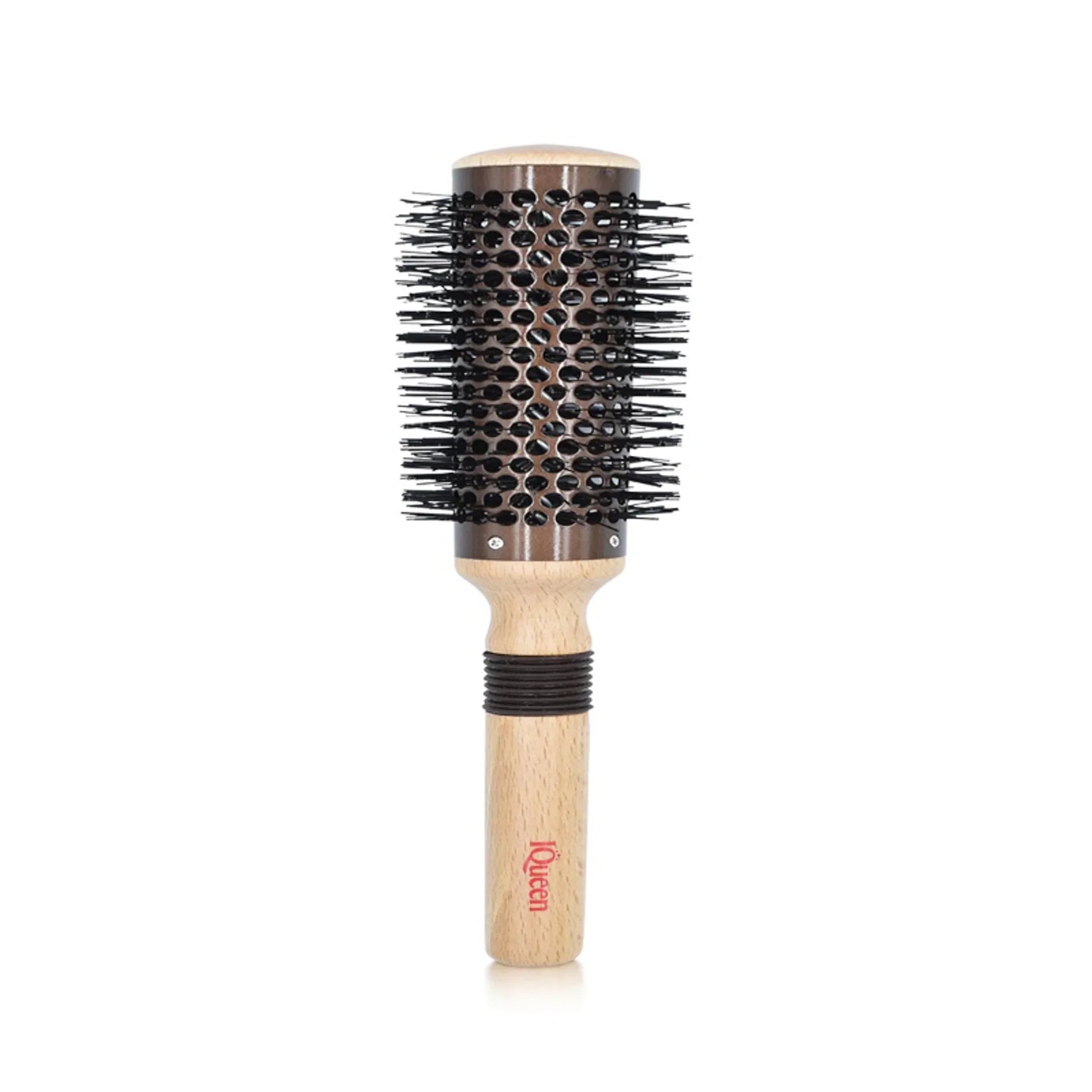 IQueen Classic Wood Vent Thermal Hair Brush Crafted from beech wood, this brush features a straight handle with a rubber ring for perfect balance and stability. The vented metal barrel heats quickly and allows air circulation, working with a blow dryer to mimic a curling iron effect. The ceramic coating evenly spreads and retains heat, reducing damage. Heat-resistant ionic nylon bristles reduce frizz, lock in moisture, and add shine for a smooth, volumized finish. Overall Diameter: 72mm, Length: 265mm