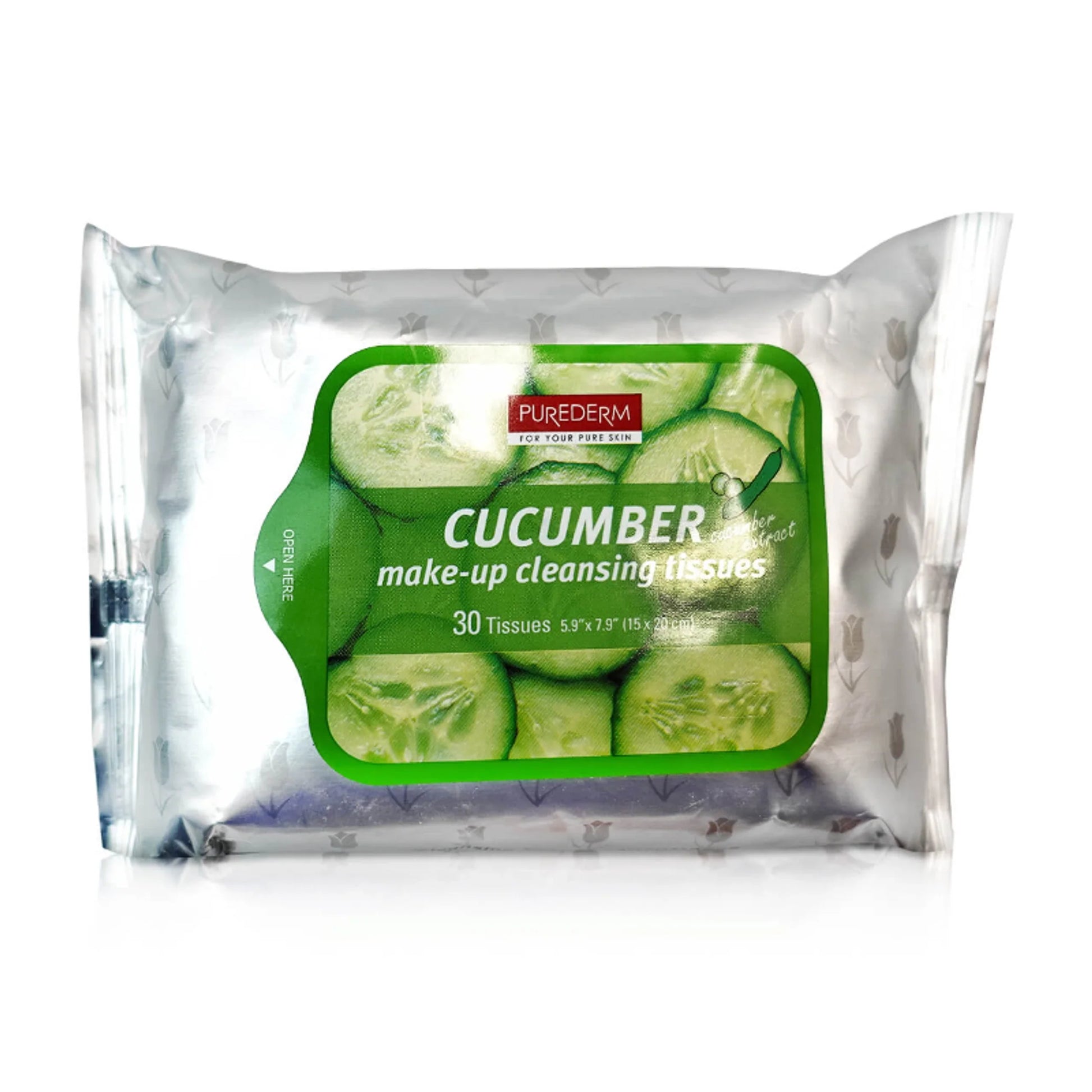 Purederm Cucumber Make up Cleansing Tissues gently and effectively removes eyeliner, shadow, lipstick, blush, and waterproof mascara without skin irritation. It leaves you feeling smooth, fresh, moisturized and completely clean anytime, anywhere!