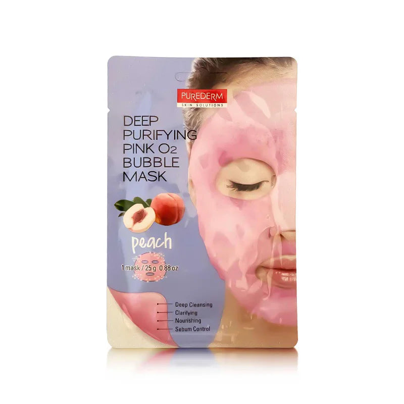 Purederm Deep Purifying Peach O2 Bubble Mask cleanses and purifies the dull skin, and Superfood 10 Complex provides vitality and energy to the weary skin of everyday life and helps to create a lively skin. It is a wash-off type deep cleansing mask sheet that effectively removes unnecessary dead skin, excess sebum and waste with Papaya Fruit and Sugarcane Extract.