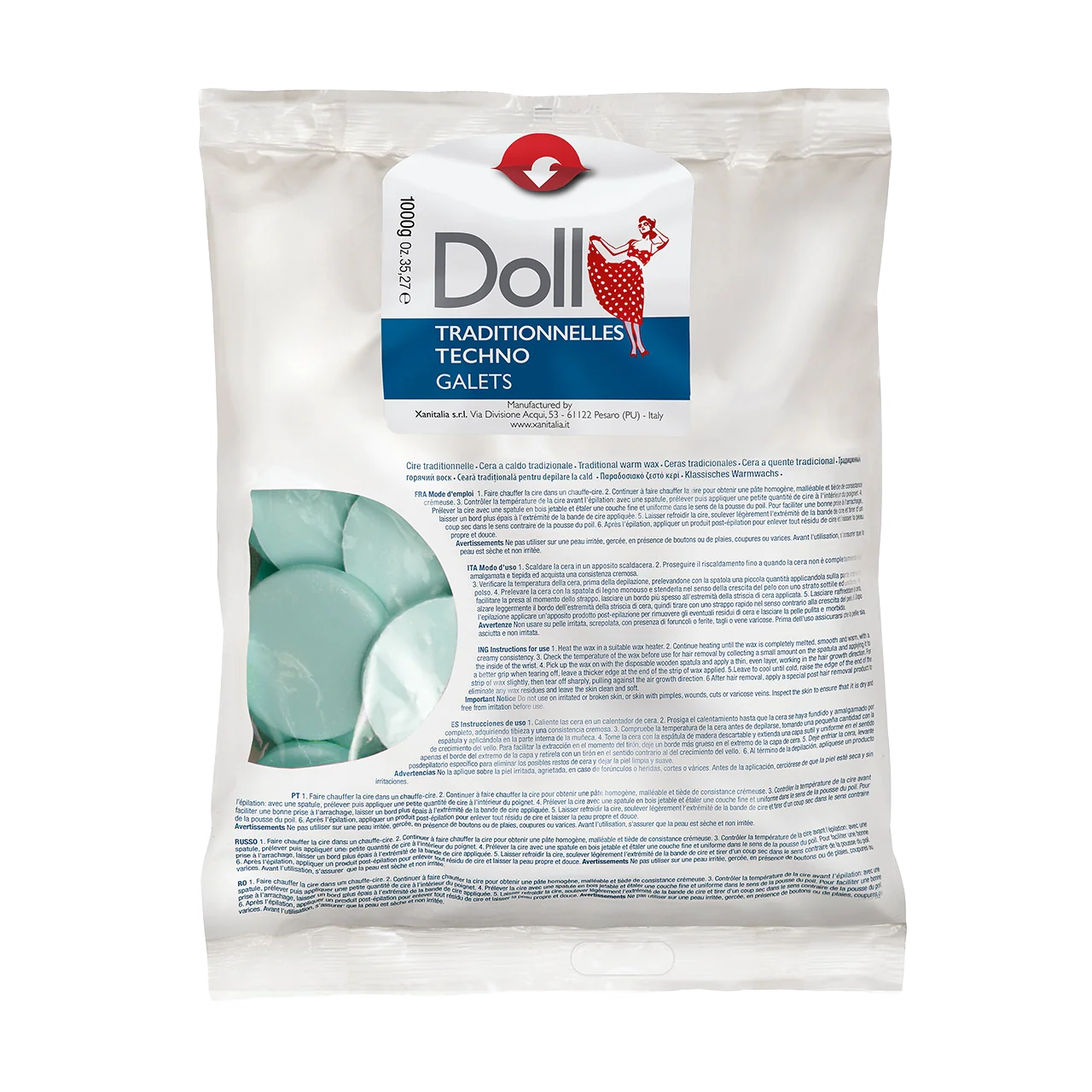 Doll Traditional Warm Wax Galets is a powerful hair removal solution designed for stubborn hair on delicate areas like the bikini line, eyebrows, lips, and underarms. Made with beeswax, resins, and hot film waxes, it applies in ultra-thin layers without the need for fabric strips. Its single-use formula ensures a fast, long-lasting, and hygienic depilation process while nourishing and hydrating the skin for a smooth, irritation-free finish.
