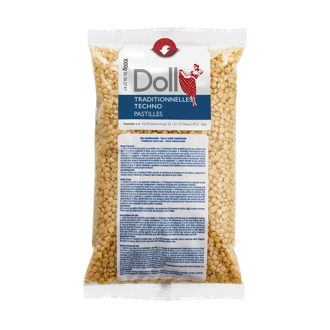 Doll Traditional Warm Wax is a professional-grade depilation product commonly used in salons. Designed for effortless application, it spreads smoothly in a thin layer and effectively removes hair from the roots, leaving the skin soft, supple, and residue-free. Formulated with natural wax ingredients, it ensures a gentle yet efficient hair removal experience. The wax applies smoothly, wrapping around hair for easy removal, effectively eliminating long, short, and even the finest hairs. Its gentle formula makes it ideal for tanned, sensitive, and dry skin.