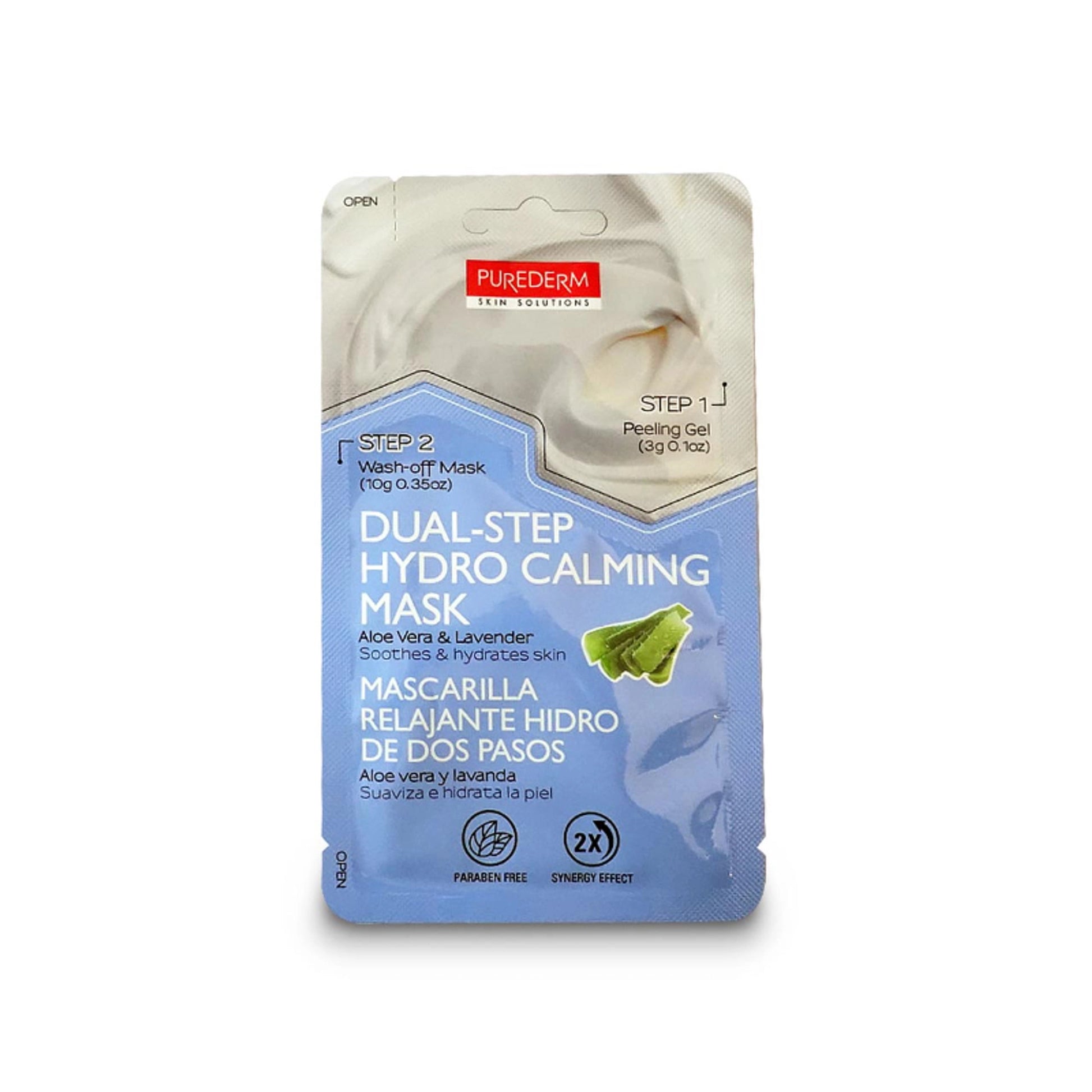 Purederm Dual Step Hydro Calming Aloe Vera & Lavender Mask combines the benefits of a peeling gel and mask for maximum skin care results. Step 1: Peeling Gel – Formulated with apple, lemon, and orange extracts, it deeply cleanses pores, gently exfoliates, removes dead skin cells, and refines the skin’s surface. Step 2: Wash-off Mask – Aloe Vera, known for its calming and hydrating properties, absorbs instantly to replenish essential nutrients and protect the skin from dehydration, leaving the skin soft, healthy, and luminous.