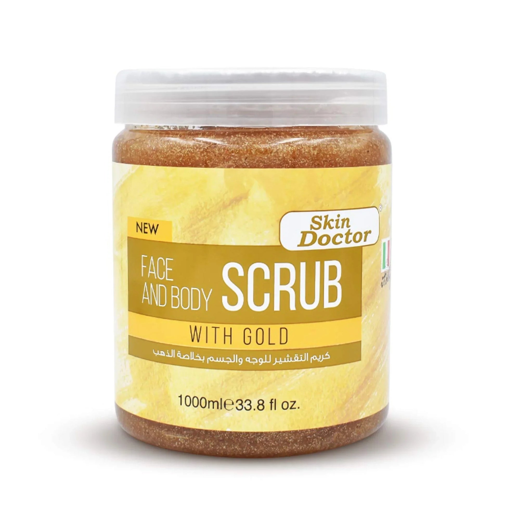 Skin Doctor Face & Body Scrub with Gold Extract exfoliates the skin gently for smooth skin. It improves and moisturizes your skin naturally, removing dead skin cells and removing impurities and dirt to replace them with fresh, clean skin.