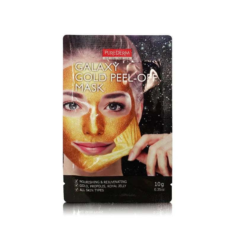 Purederm Galaxy Gold Peel Off Mask gently peels away impurities and dead skin cells while gold, propolis and royal jelly extract provide rich nutrition and moisture to the rough and frizzy skin, creating a smooth skin. plus, mineral water quickly replenishes the moisture energy of your skin, helping to keep your tired skin healthy and vigorous.