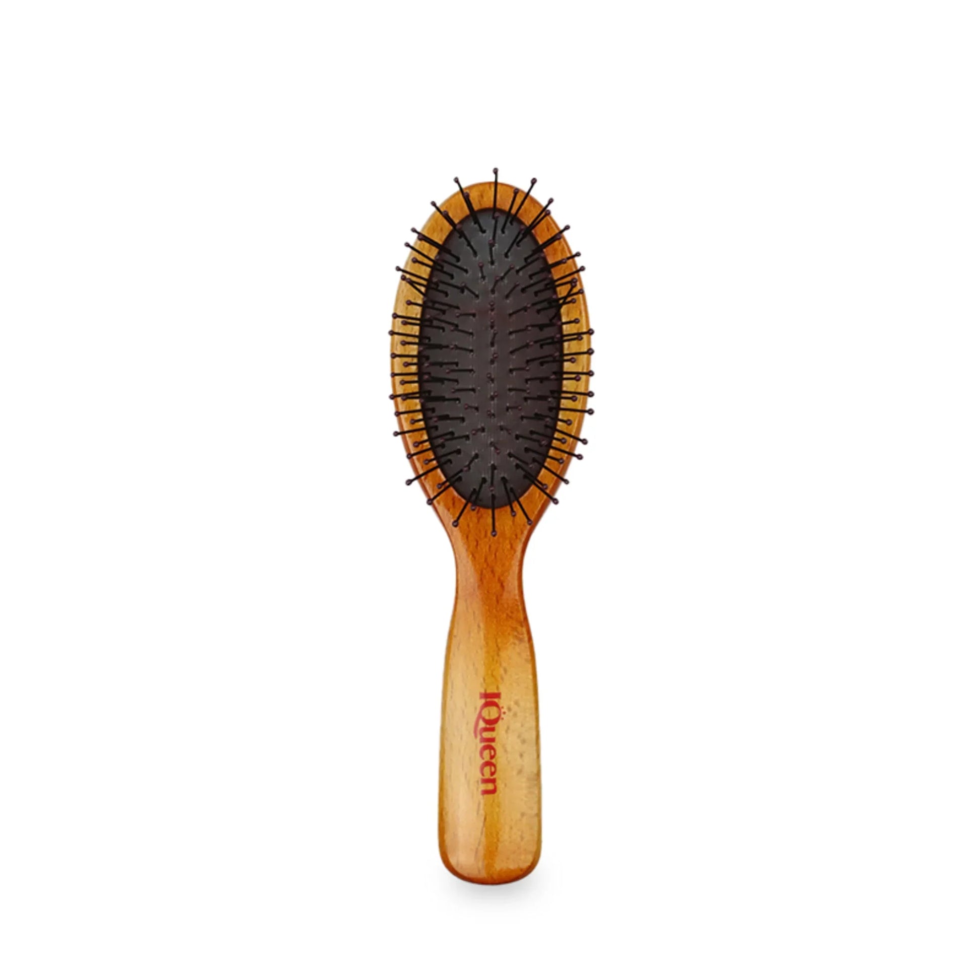 IQueen Glossy Lux Detangler Hair Brush Series With a semi-sheer amber ombré finish, this brush reveals natural wood grains beneath a glossy, polished surface for a touch of luxury. Flexible nylon bristles with ball tips gently detangle wet or dry hair without pain, while the dense bristle layout boosts efficiency. Heat-resistant ionic nylon reduces frizz, locks in moisture, and adds shine. Oval Shape, Small Size, Overall Width: 50mm, Length: 175mm