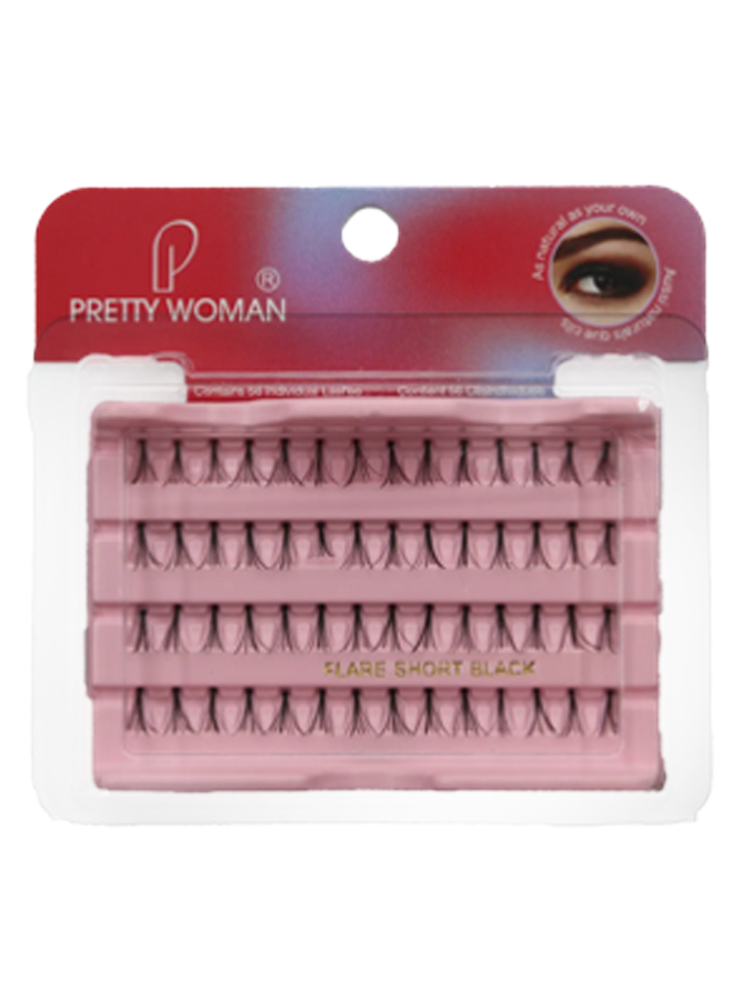 Apply a few drops of lash glue to foil, dip the knotted end of the lash into the adhesive, and place it on top of your natural lash without touching the eyelid. Hold gently until set. Apply 10-15 lashes per eye and remove with Pretty Women Lash Free Adhesive Remover.