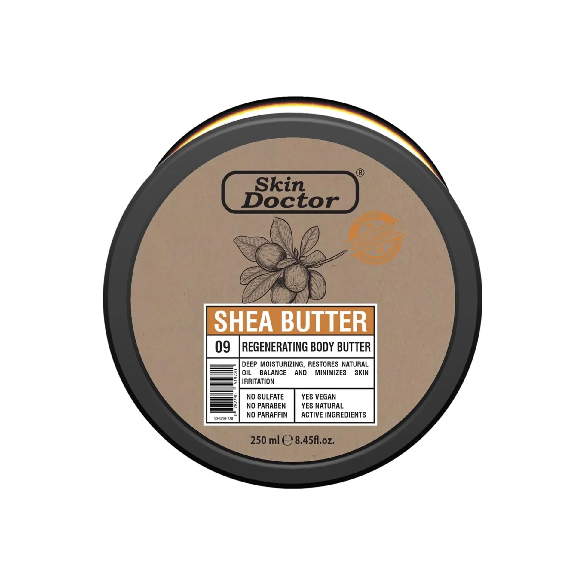 Skin Doctor Shea Butter Regenerating Body Butter offers a non-greasy fast drying formula. Shea Butter rich in Vitamin E and other nutrients highly moisturizes the skin, reduces irritation and makes it smoother. Restores natural oil balance and minimizes skin irritation. - No sulphate. - No paraben. - No paraffin. - Vegan formula. - Natural active ingredients.