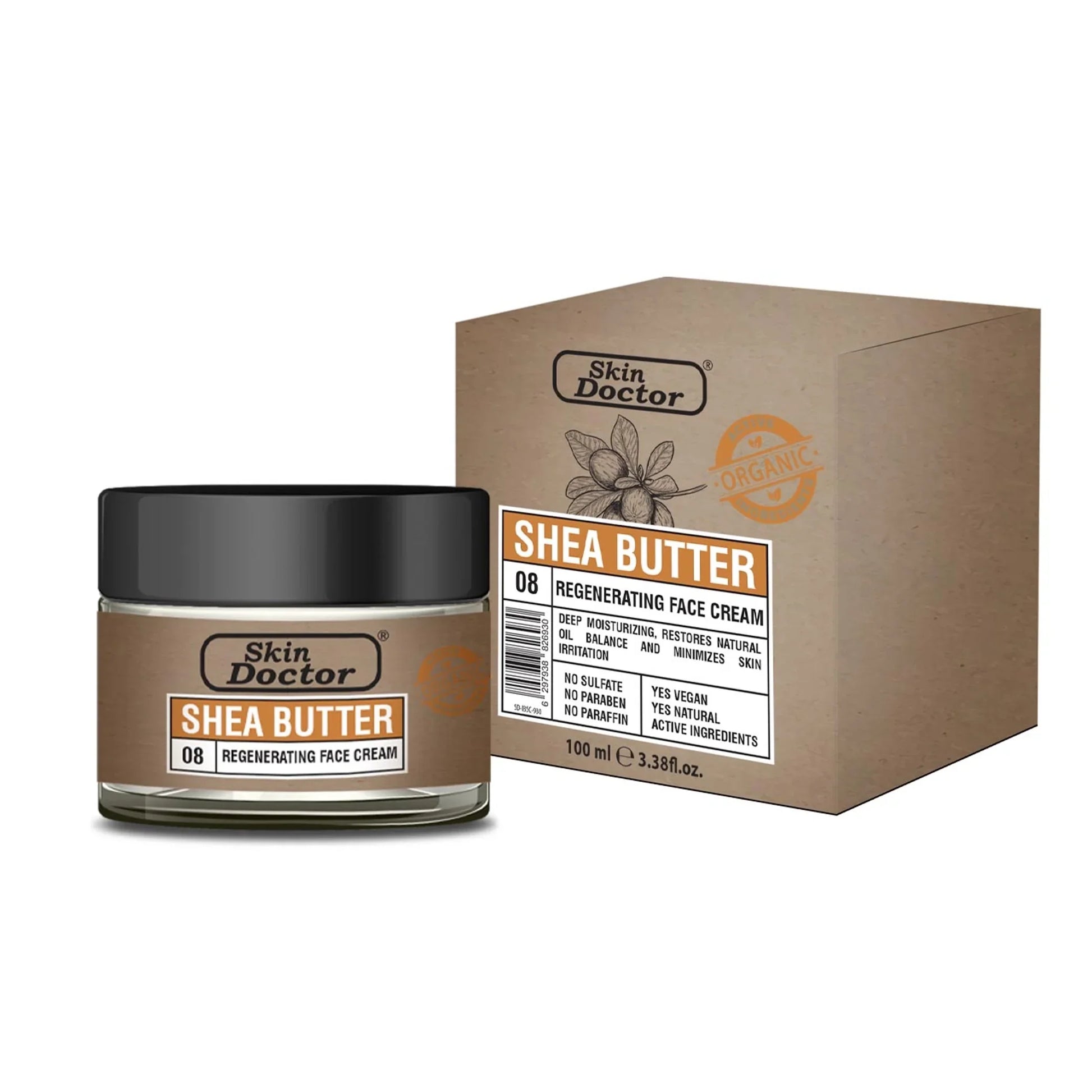 Skin Doctor Shea Butter Regenerating Face Cream offers a fast absorbing formula that restores the skin barrier by retaining skin moisture and regulating its oil balance. Rich in Vitamin E with anti-inflammatory, anti-bacterial and anti-oxidant properties, shea butter helps minimize irritation and reduces signs of aging. Deep moisturizing, restores natural oil balance and minimizes skin irritation. - No sulphate. - No paraben. - No paraffin. - Vegan formula. - Natural active ingredients.