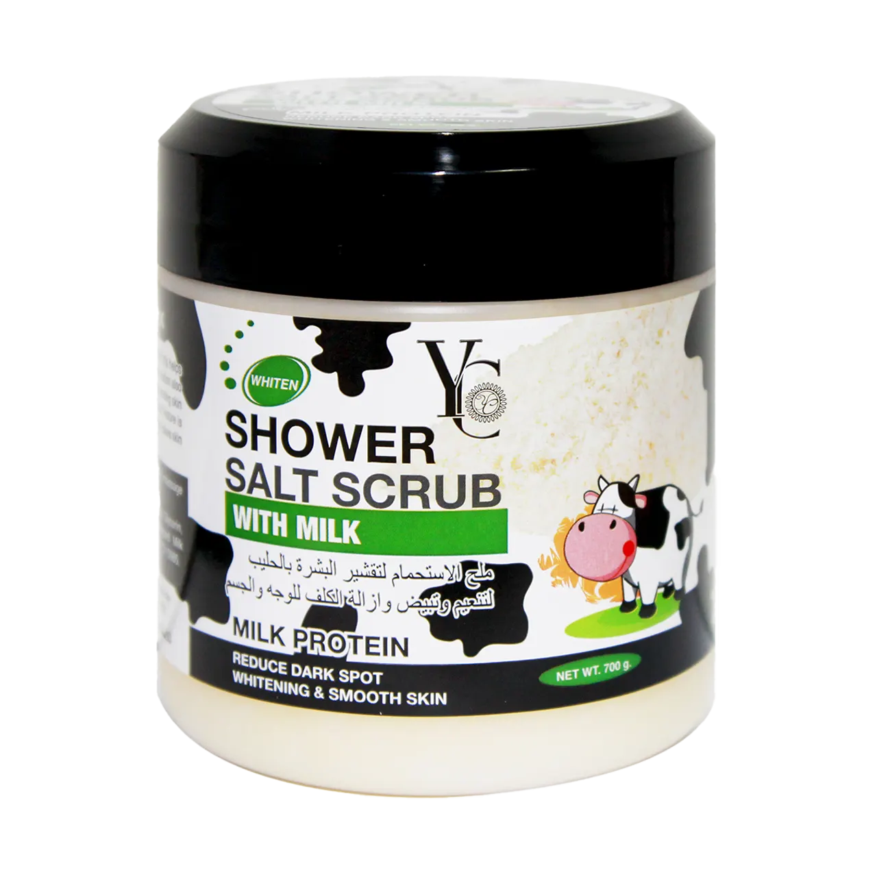 Yong Chin Shower Salt Scrub with Milk helps remove old skin cells and replenish with new cells. This special formulation also adjusts the skin tone to be even, reduces blemish and dark spots and renews skin regenerating process for natural whitening effect. It offers a delicate texture that is a combination of natural salt, milk protein and multi-vitamins that makes the skin glow and offers a healthy, smooth and moisturized finish.