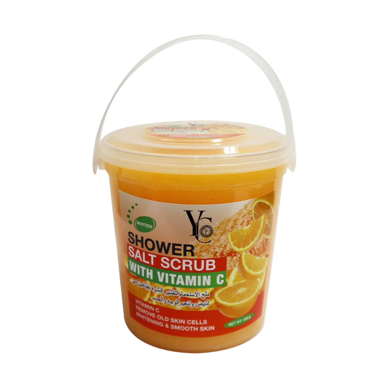 YC Vitamin C Shower Salt Scrub is a unique product that aids in the removal of old skin cells and promotes the rejuvenation of new cells. Its special formulation helps even out skin tone, reduce blemishes and dark spots, while naturally enhancing the skin's whitening process. With a delicate texture and a combination of natural salt, vitamin C, and food extracts, this shower salt scrub leaves your skin glowing, healthy, smooth, and moisturized.