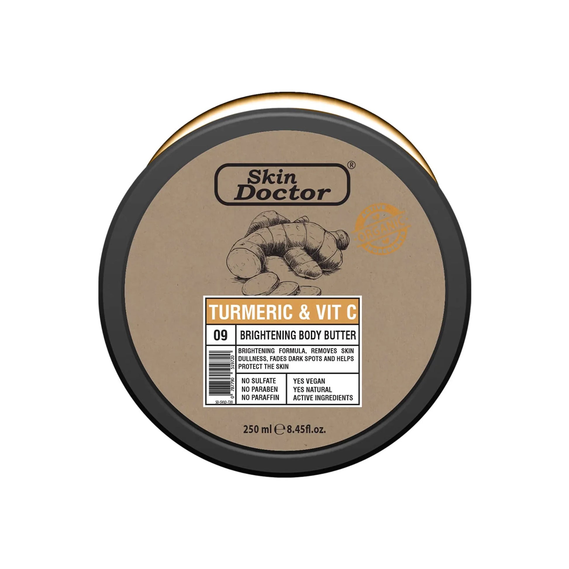 Skin Doctor Turmeric & Vit C Brightening Body Butter offers to leave your skin moisturized, soft, supple and silky smooth on every use. Brightening formula, removes skin dullness, fades dark spot & helps protect the skin. - No sulfate - No paraben - No paraffin - Vegan formula - Natural active ingredients.