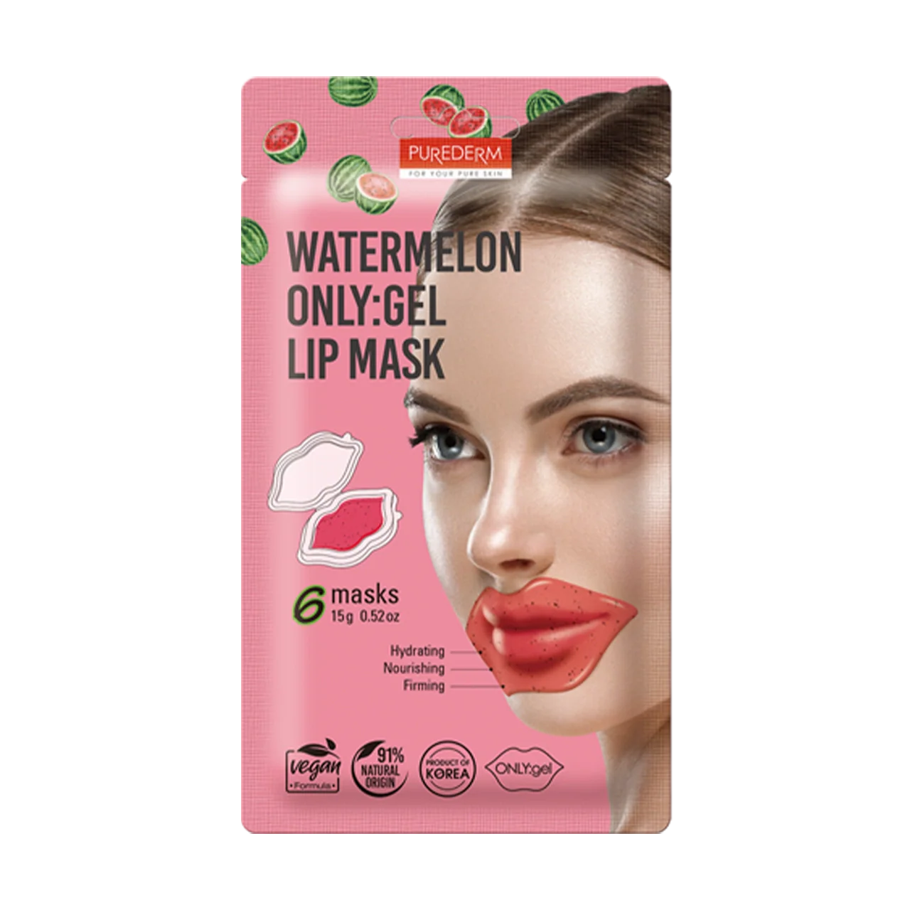 Purederm Watermelon ONLY:gel Lip Mask contains Bakuchiol, Berry Complex and Triple Hyaluronic Acid to prove abundant moisture to the skin and restore firm and healthy lips. The so Called "Real Fruit Gel Formula" which combines Watermelon Extract, Black Cumin Seed Extract and Vegan Collagen fills tired lips with rich nutrition, and the appearance of the gel resembling real watermelon also provides visual pleasure. Why ONLY:gel Lip Mask? ONLY:gel lip mask is designed to provide more economical lip care by containing 6 sheets of gel mask in a specially developed tray. It also packaged in a zipper bag that can be opened and closed multiple times, making it convenient to use and store.