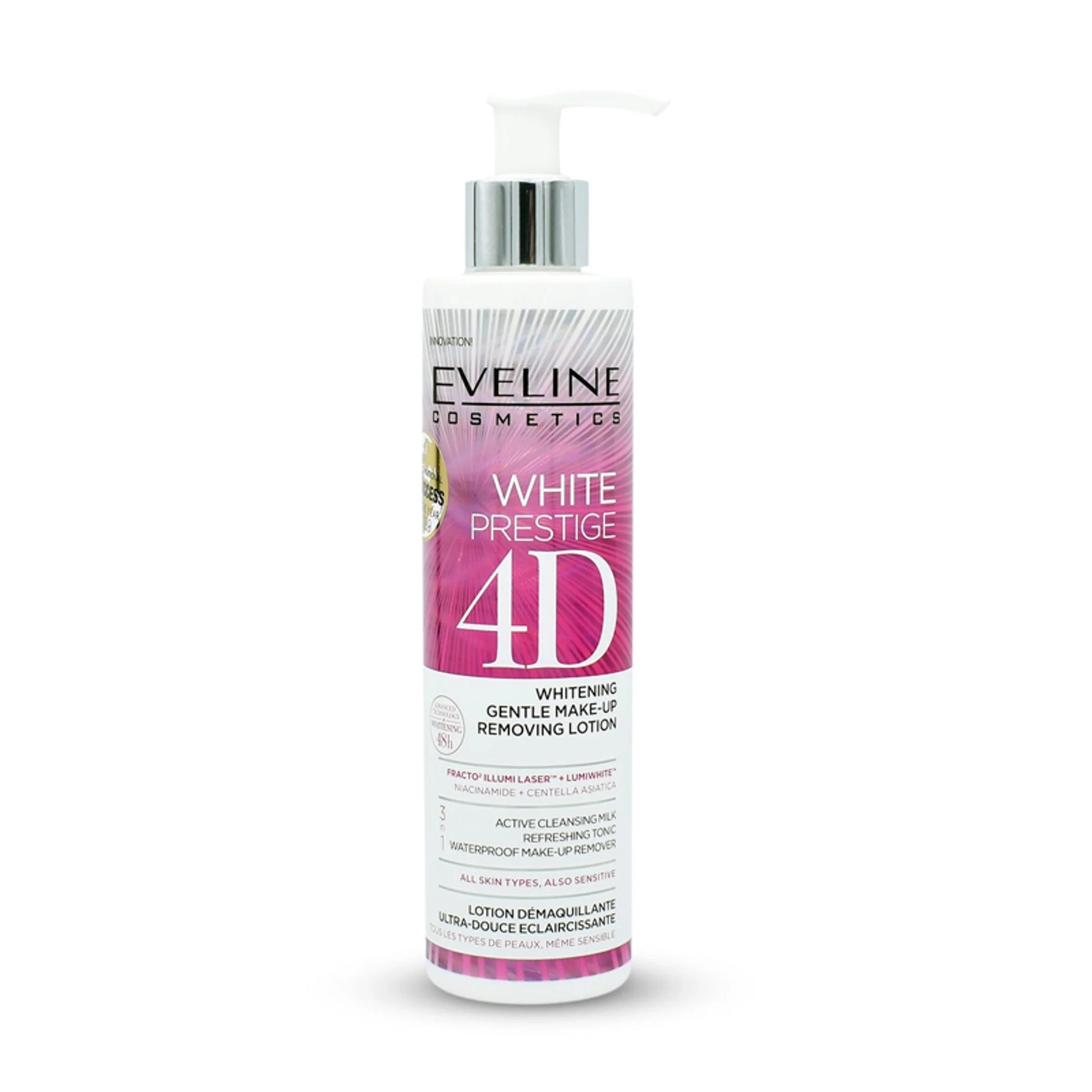 Eveline Cosmetics White Prestige 4D Make Up Removing Lotion combines the advantages of cleansing milk, tonic and make-up remover, extremely gently and effectively purifies facial skin and eyes area, thoroughly removes even waterproof make-up. ADVANCED INGREDIENTS:FRACTO2 ILLUMI LASERTM is the cutting edge technology, using the concentrated power like laser beam that penetrates into deeper layers of the epidermis, paving the way for brightening LumiwhiteTM Complex. LumiwhiteTM Complex breaks down the melanin accumulated at the place of the discoloration into finer molecules, which are then automatically absorbed. Niacinamide enhances skin elasticity and firmness. Centella Asiatica deeply nourishes and supports the renewal of the natural protective layer of the skin. Features & Benefits: - Refreshing Tonic - Make-up Remover - Removes even waterproof make-up - For all skin types, also sensitive